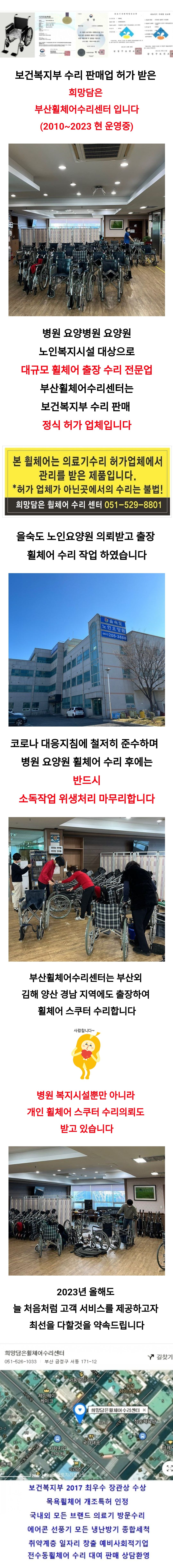 | 희망담은 부산휠체어수리센터 휠체어 수리 점검 출장 노인요양원 입니다 (0) | 2023.09.18 |